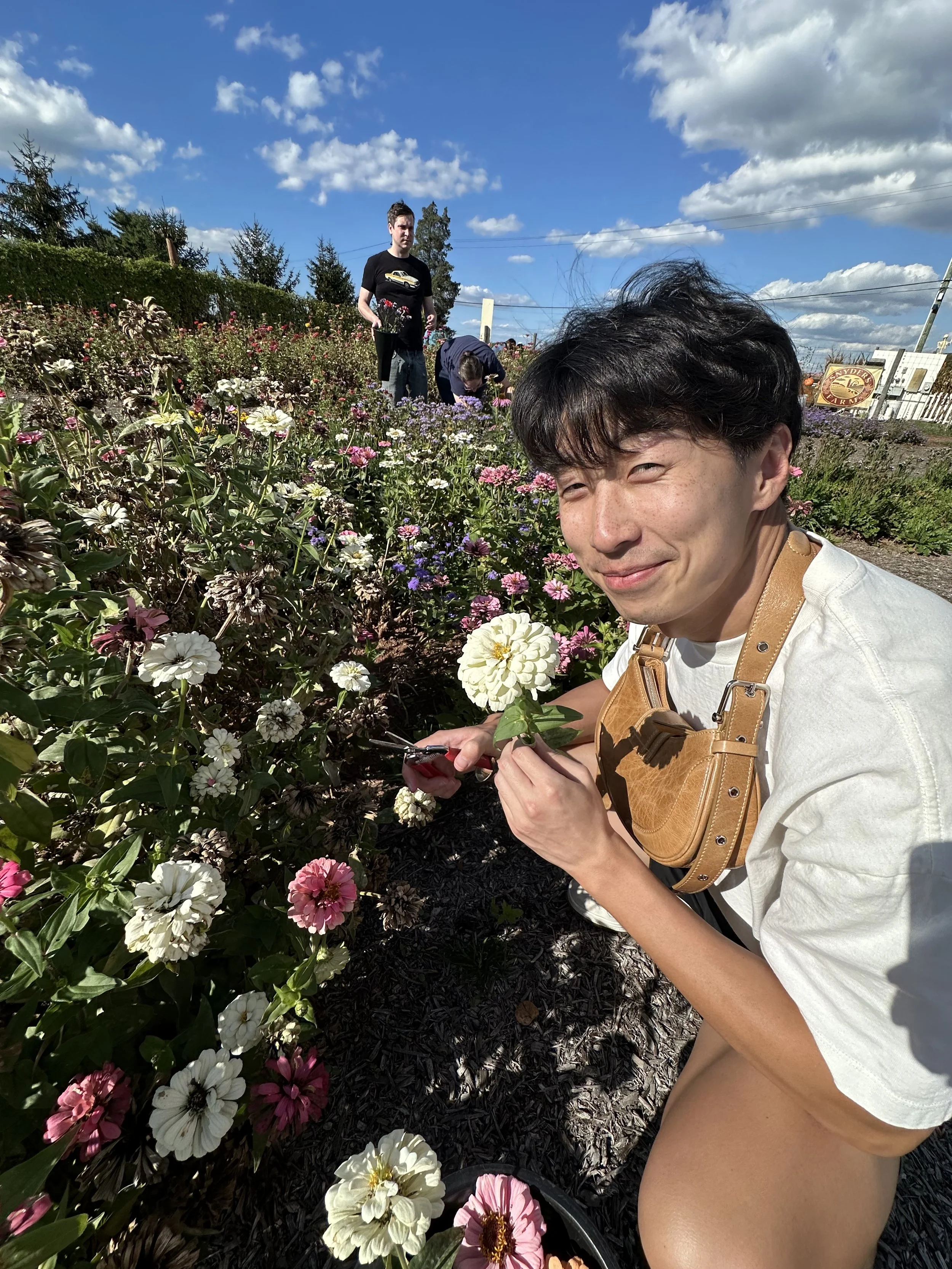 Farming while waiting for your mom to come back home. My man is the best flower picker/purse holder :’)